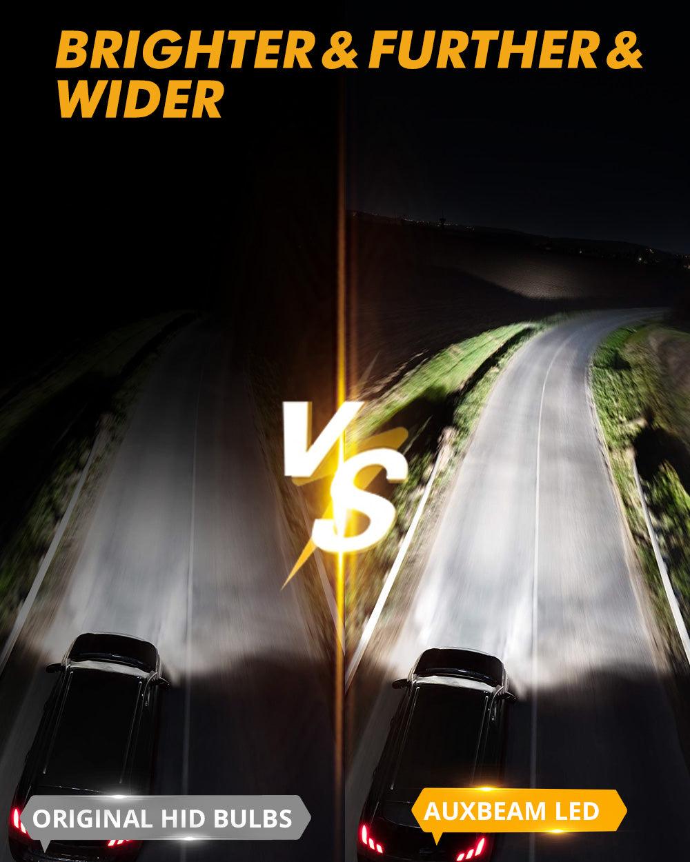 D4/D4S/D4R LED headlight bulbs delivering 70W and 22,000 lumens per pair with advanced CSP-4575 chip technology. Features a precision 1:1 beam pattern matching OEM HID specifications, eliminating glare and dark spots for safe, uniform illumination. Triple heat dissipation system—dual copper tubes, aluminum housing, and 12,000 RPM fan—extends lifespan to 50,000 hours. CANBUS-compatible driver ensures 99% vehicle compatibility without error codes. IP68 waterproof rating handles extreme temperatures from -45°C to 150°C. Direct ballast installation in under 10 minutes. Cool white 6500K output. Includes two bulbs.